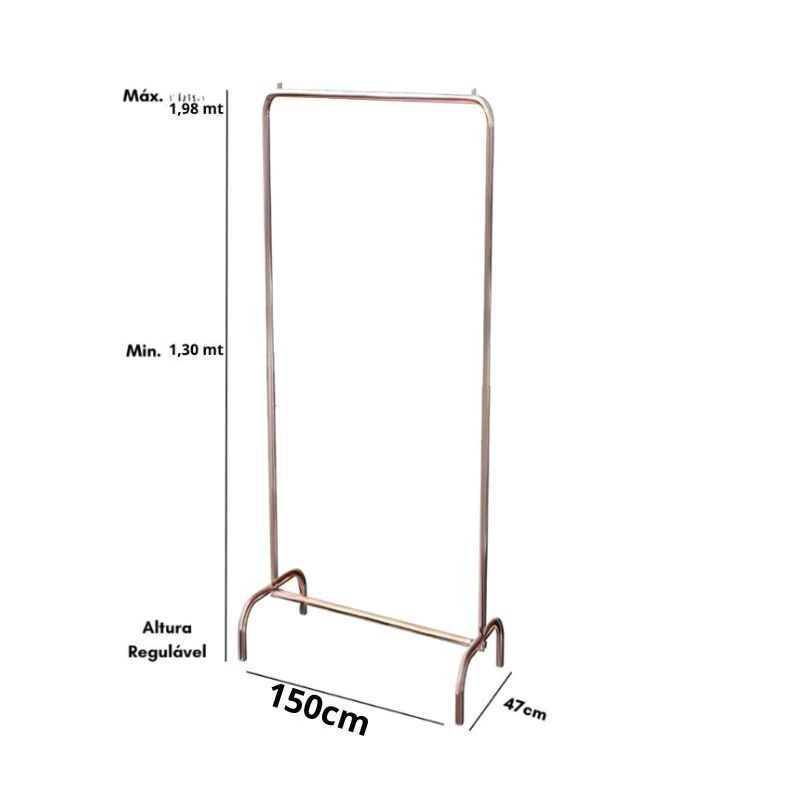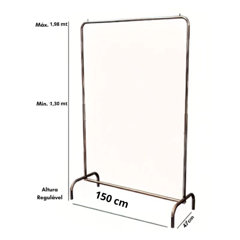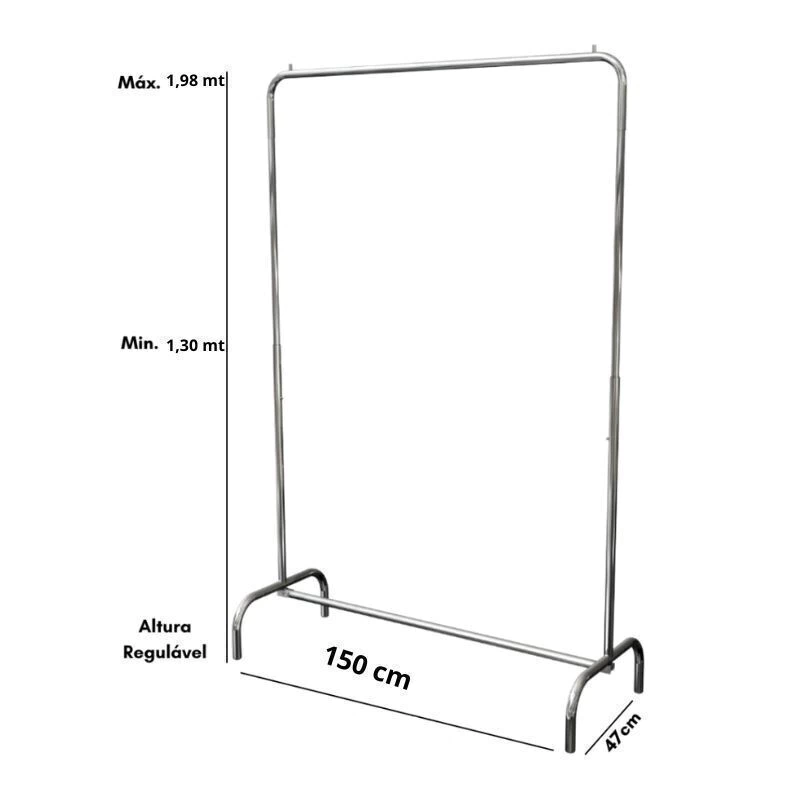 Fabricada em aço resistente, esta arara apresenta um sistema articulável que permite ajustar a altura de 1,30 a 1,98 metros. Isso garante que suas peças sejam exibidas de forma ideal, proporcionando estabilidade e segurança.