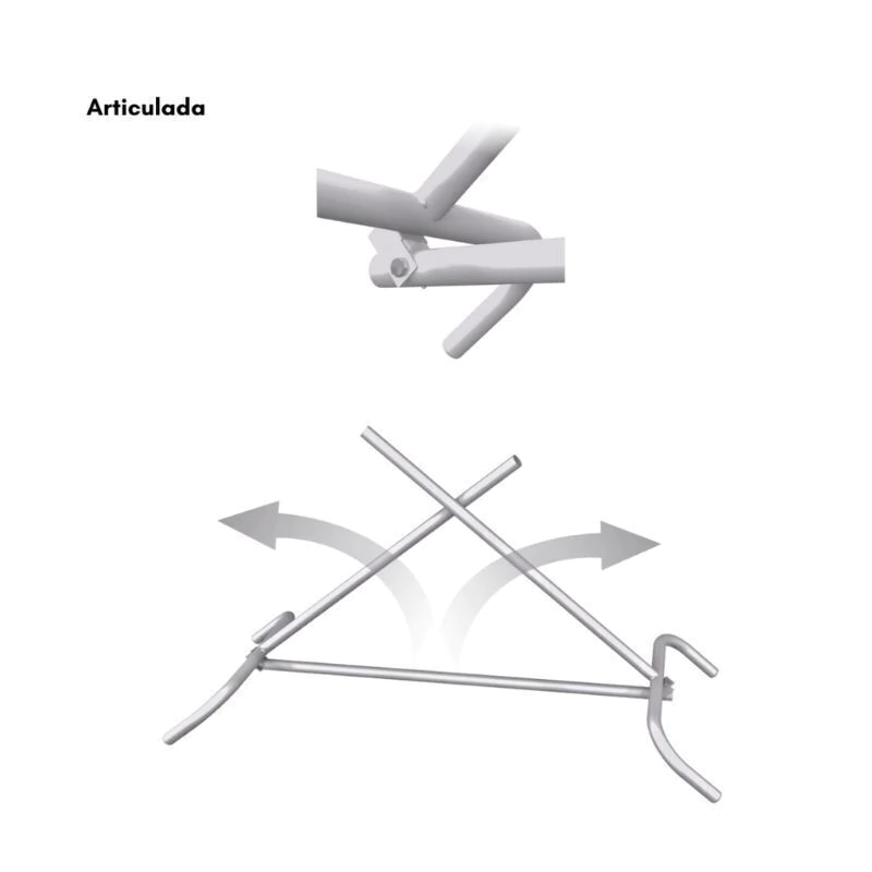 Fabricada em aço resistente, esta arara apresenta um sistema articulável que permite ajustar a altura de 1,30 a 1,98 metros. Isso garante que suas peças sejam exibidas de forma ideal, proporcionando estabilidade e segurança.
