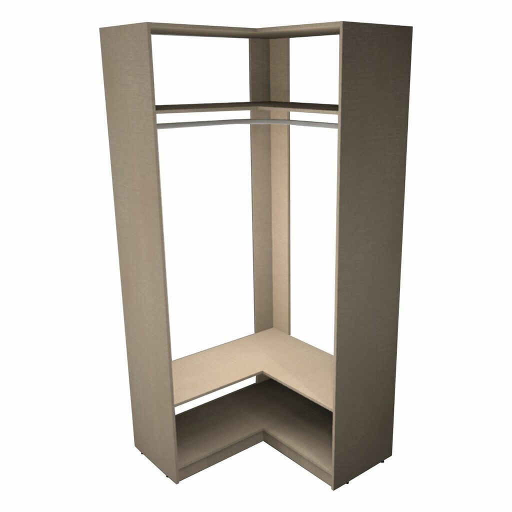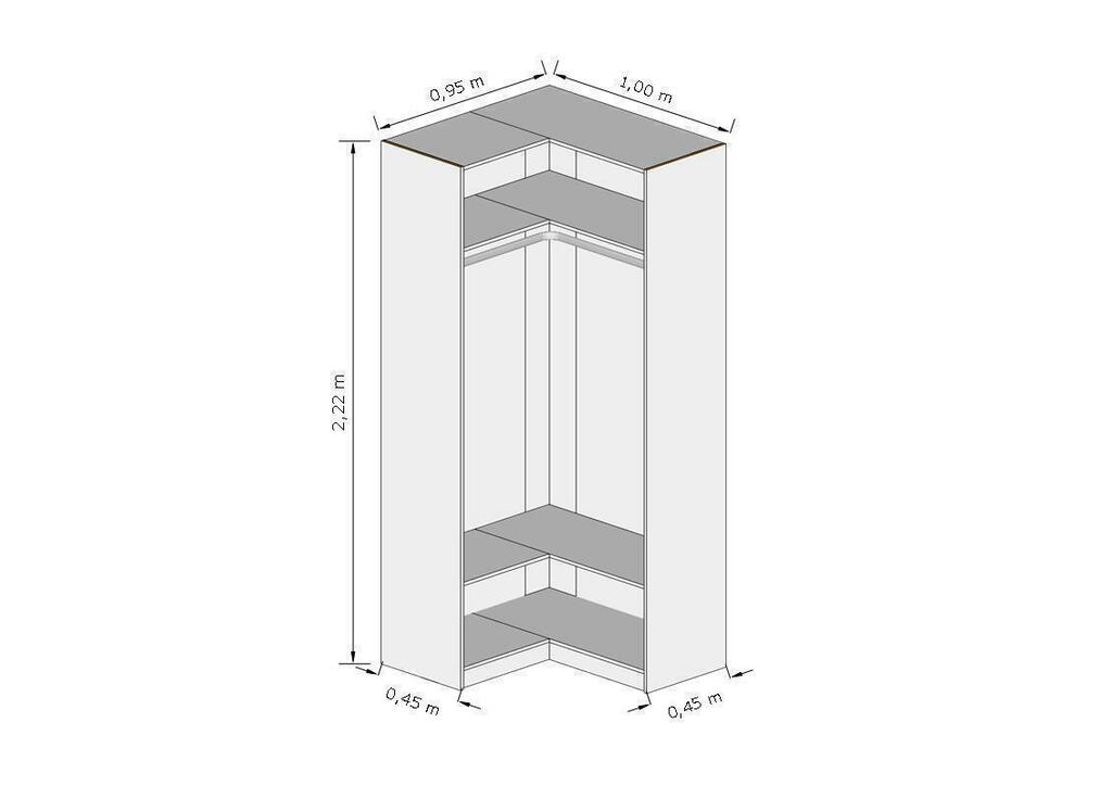Closet Canto podendo montado conforme sua necessidade. Perfeito para ser encaixado no canto de sua parede armazenando roupas dobradas e no cabide. Compre já o seu!