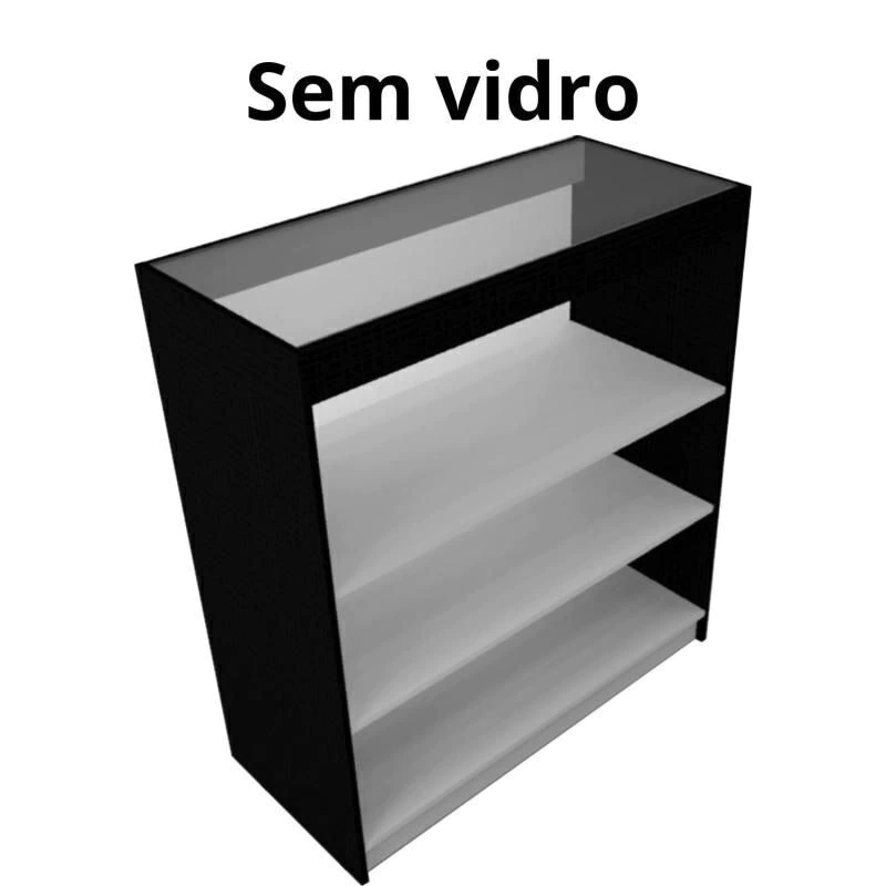 Produzido em MDF 15 mm, possui estrutura resistente, ótimo acabamento e prateleiras internas que permitem organizar e expor mercadorias de forma eficiente.