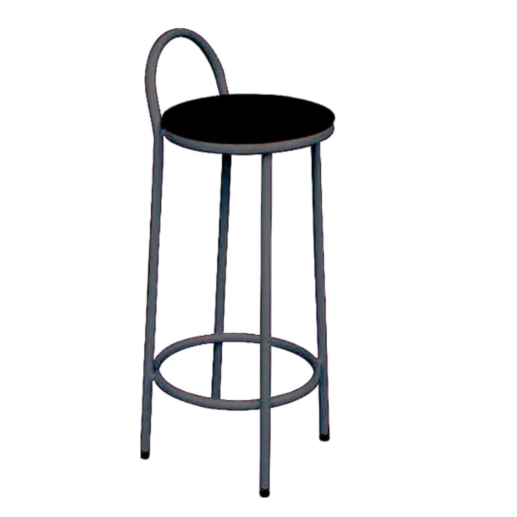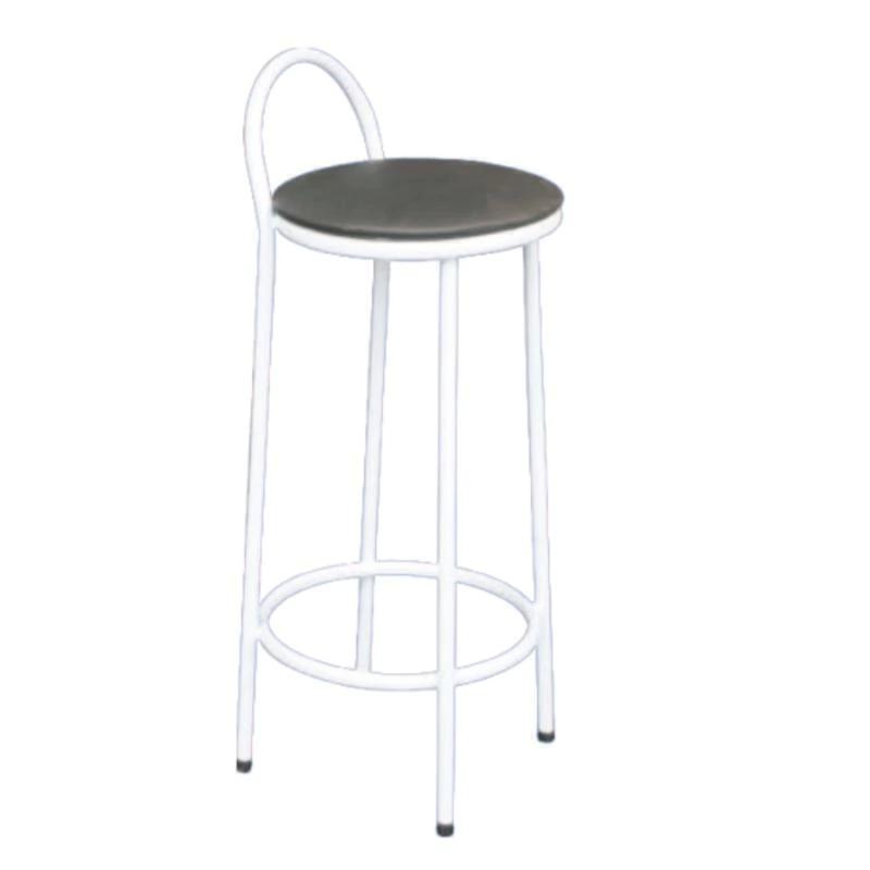 Banqueta Alta com Encosto Baixo e Estofado Preto – Estrutura em Aço com Pintura Epóxi Branca ou Preta