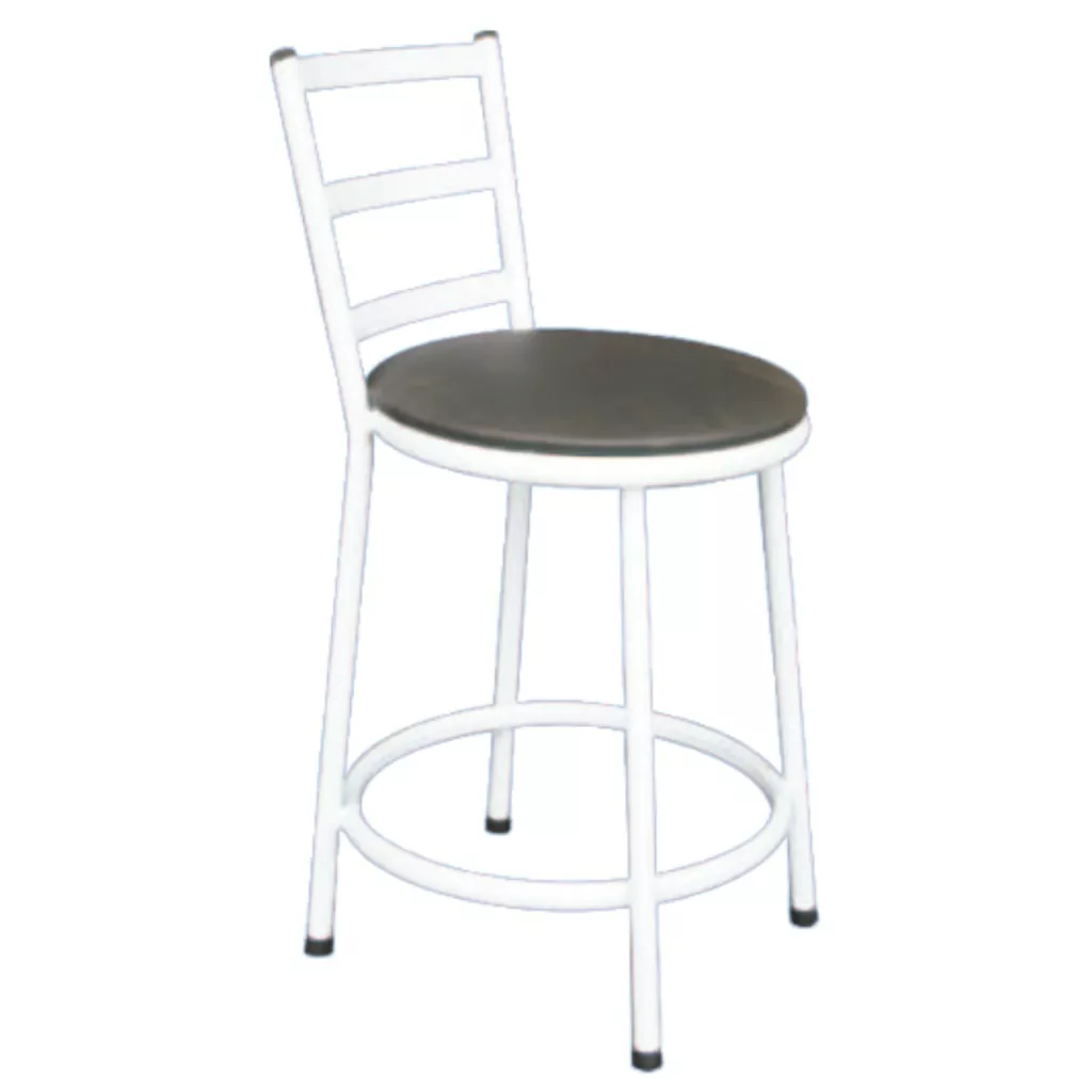 Seu assento estofado oferece conforto extra, enquanto o encosto alto proporciona suporte adequado para a coluna. Disponível nas cores branca ou preta, sua estrutura metálica recebe pintura epóxi de alta resistência, garantindo durabilidade e acabamento sofisticado.