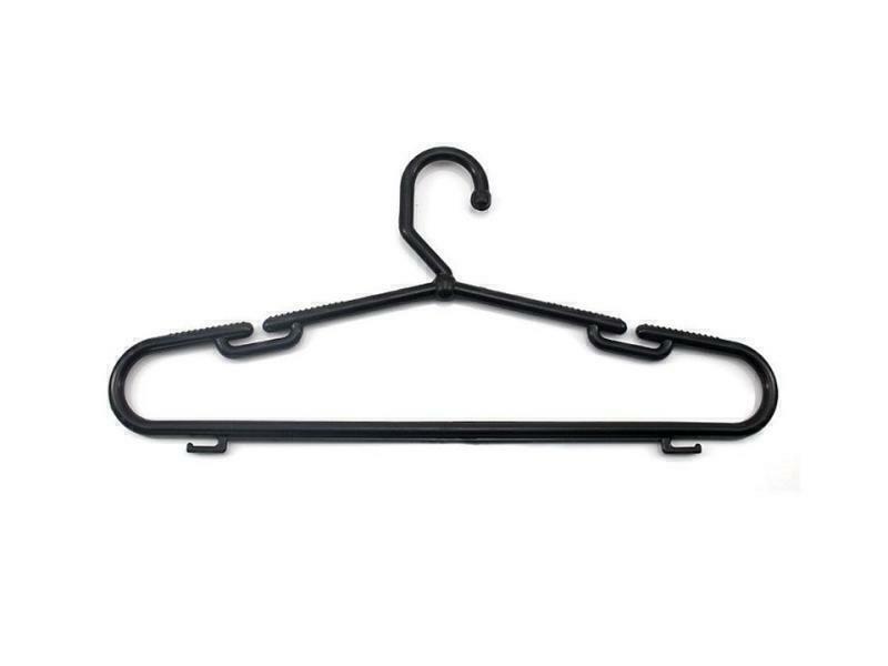 Este cabide foi especialmente desenvolvido para pendurar roupas maiores e mais pesadas, como casacos, blazers, vestidos e camisas, sem perder a praticidade. Com uma estrutura reforçada em plástico preto de alta qualidade, ele garante durabilidade e segurança para suas peças.