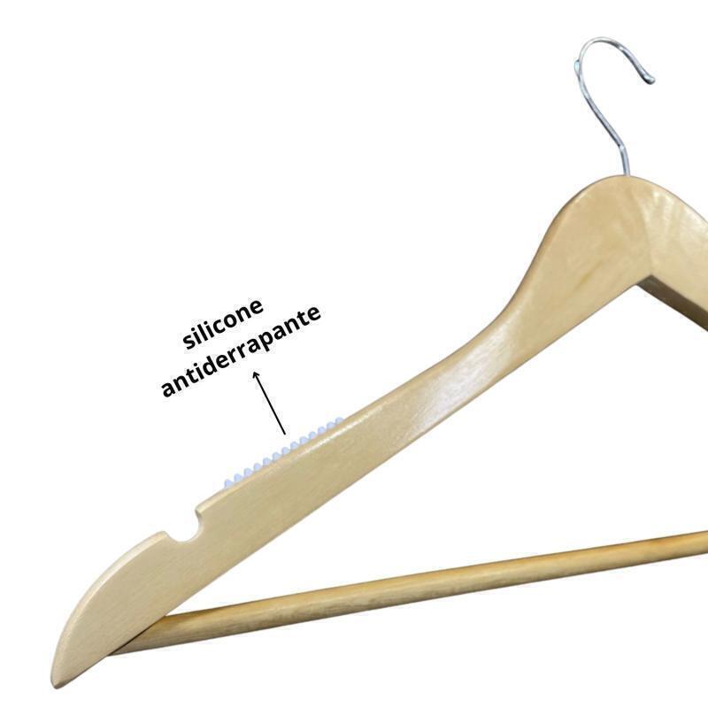 O Cabide de Madeira com Silicone Antiderrapante – Kit com 5 Unidades une durabilidade, estilo e funcionalidade em um único produto. Fabricado com madeira de alta qualidade, este cabide traz um toque elegante para closets e lojas, enquanto seu revestimento de silicone antiderrapante evita que as roupas escorreguem ou se amassem.