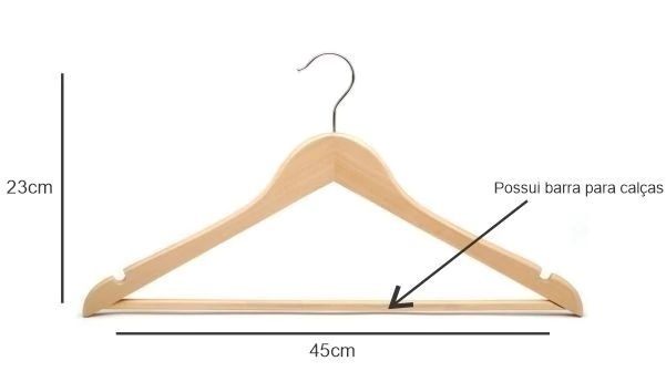 O Cabide de Madeira Com Barra Adulto - 45 x 23 cm é a escolha perfeita para transformar o seu armário em um espaço organizado e elegante. Com acabamento em madeira de alta qualidade, ele garante durabilidade e um toque sofisticado para suas roupas.
