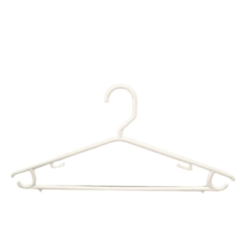Feito em plástico branco de alta qualidade, sua espessura de 10mm oferece firmeza, enquanto o design cavado é perfeito para pendurar roupas mais delicadas.