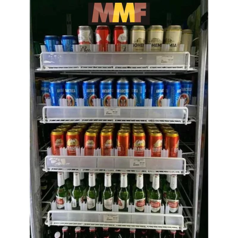 Produção especial para medidas menores SOMENTE no Comprimento/Profundidade, mediante custo adicional. Produto acondiciona embalagens de bebidas como: Latas de alumínio 350/500ml, garrafas pet 500/600ml, vidro e outros recipientes similares até 600ml , movimentando-as através de gravidade ao ser retirado a 1ª embalagem pelo consumidor, mantendo assim sempre a frente das prateleiras as embalagens organizadas e expostas para uma próxima retirada.