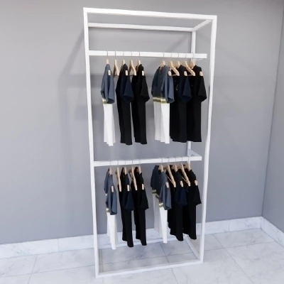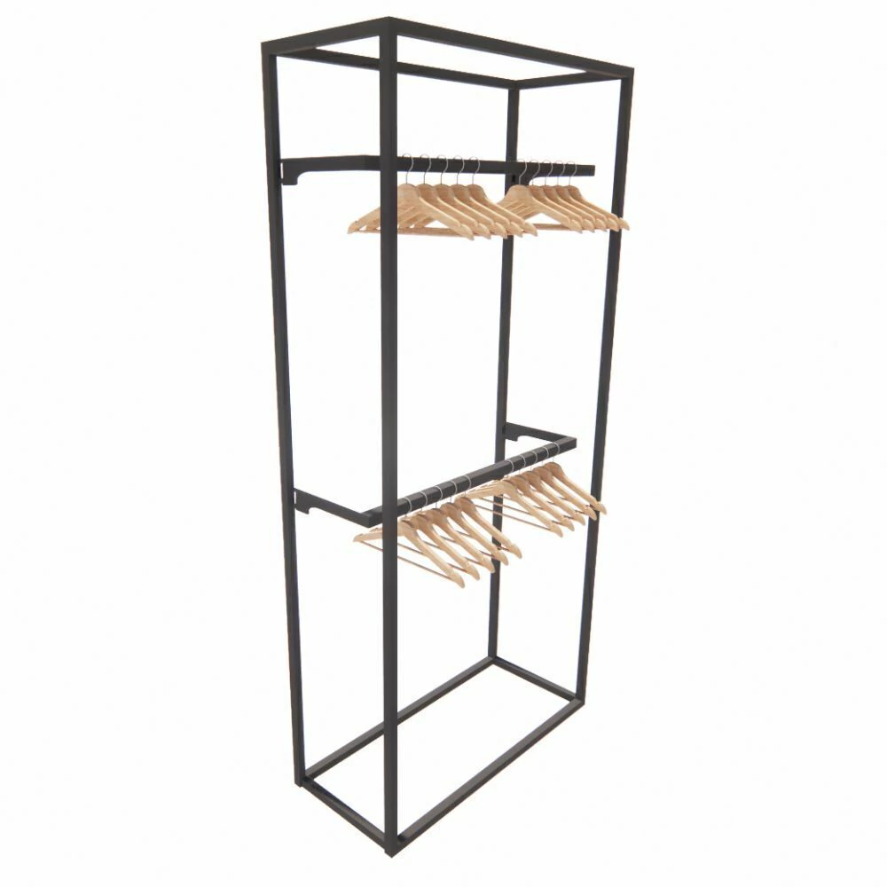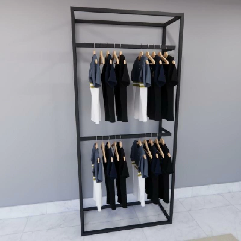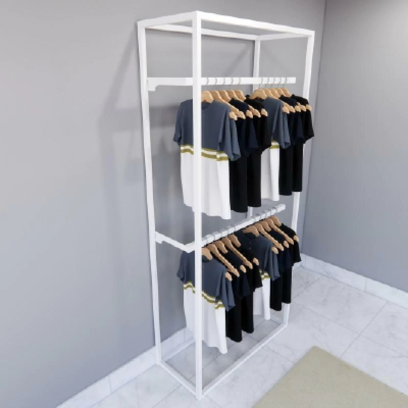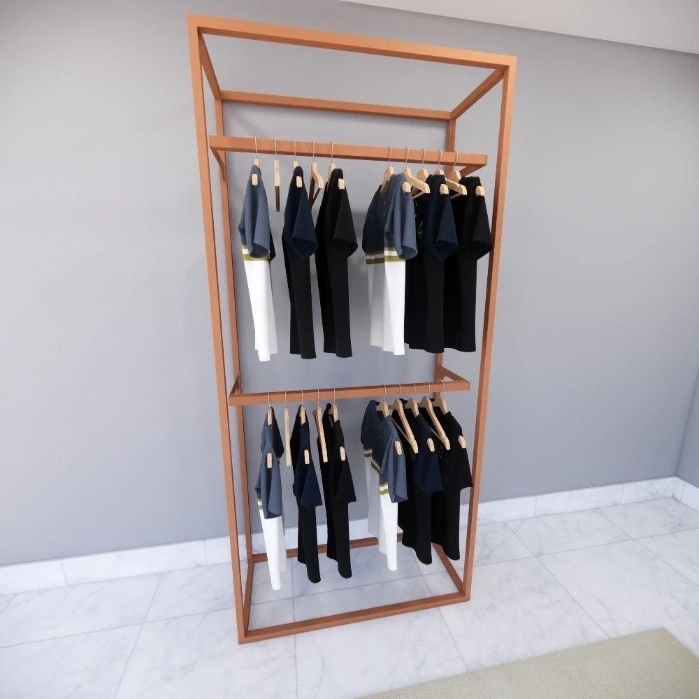 Organizar e expor roupas e acessórios de forma eficiente, personalizável e com visual contemporâneo. Ideal para uso comercial e residencial.