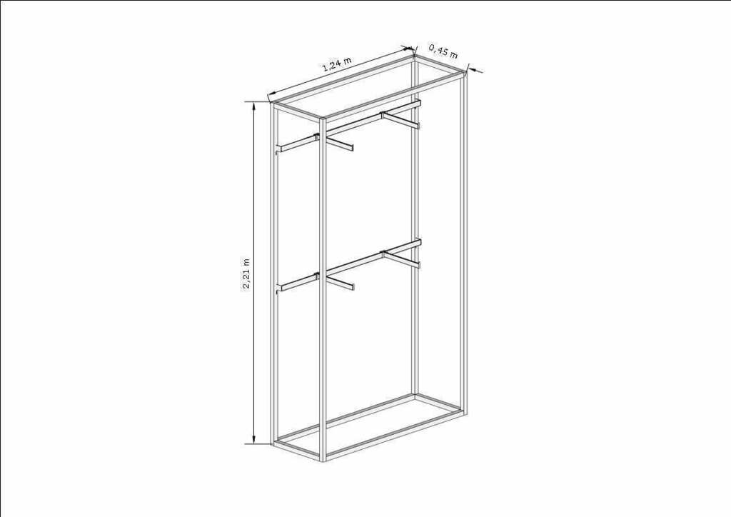 Sua estrutura robusta garante estabilidade mesmo com grande volume de peças, sendo ideal para acomodar roupas, bolsas, sapatos ou até objetos decorativos. Além disso, seu design minimalista permite fácil integração com qualquer estilo de decoração, do industrial ao contemporâneo.