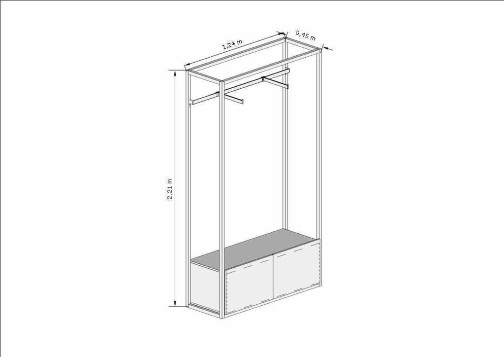 produto conjunto estante com porta e arara de cremalheira 124 cm