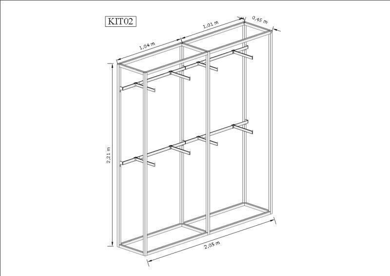 Produto conjunto estante 02 com 4 araras frontal 2,05 mt