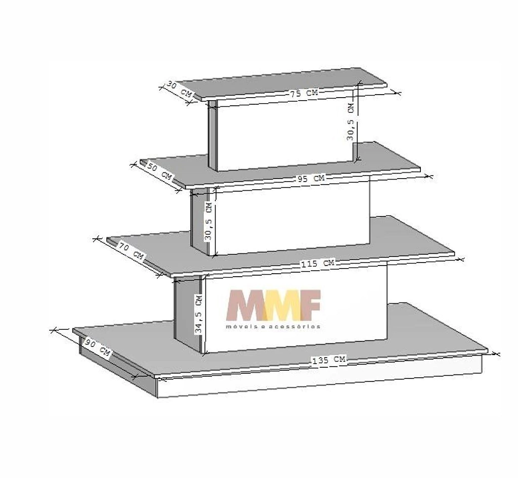 Estante Pirâmide Central em MDF 15 mm – 135 x 110 x 90 cm