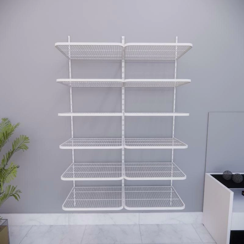 Com seis prateleiras aramadas, o kit proporciona excelente aproveitamento vertical, permitindo acomodar roupas, calçados, caixas, acessórios e muito mais. Seu design moderno e arejado evita o acúmulo de umidade, protegendo seus itens contra mofo.