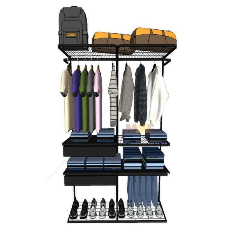 Sistema Arejado Sem Umidade O design arejado do Kit Closet Aramado evita a umidade, garantindo que suas roupas e acessórios permaneçam frescos e bem conservados. Diga adeus ao mofo e aos odores desagradáveis, mantendo seu closet sempre organizado e agradável.