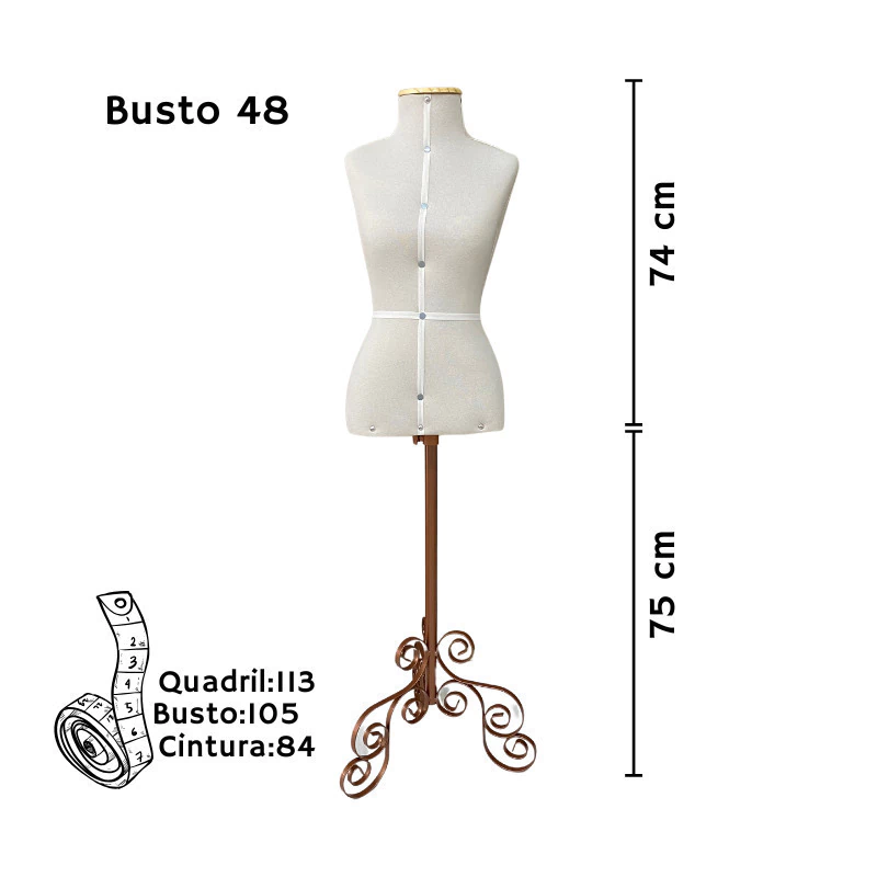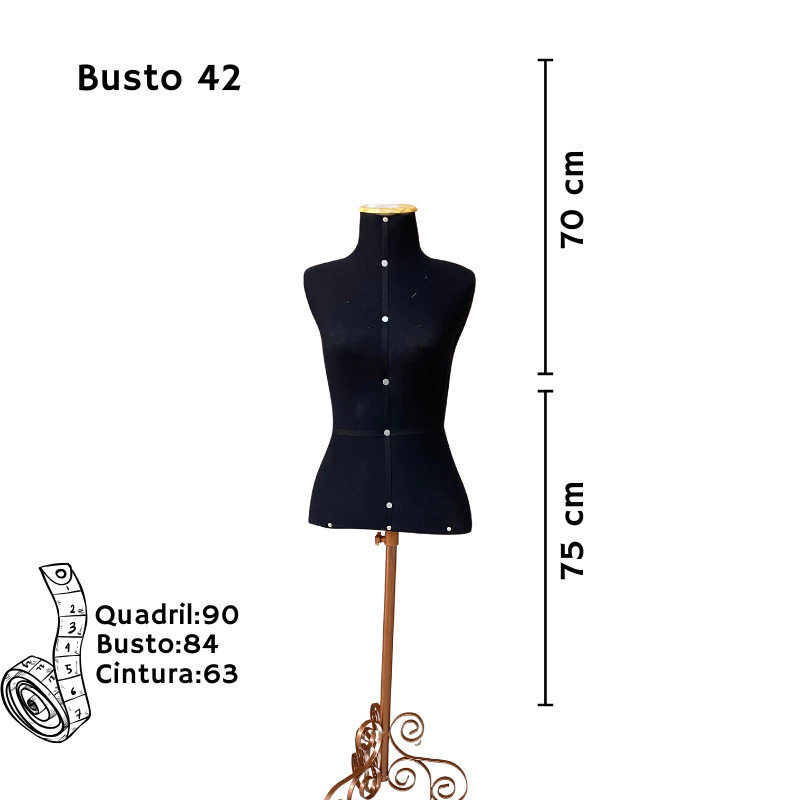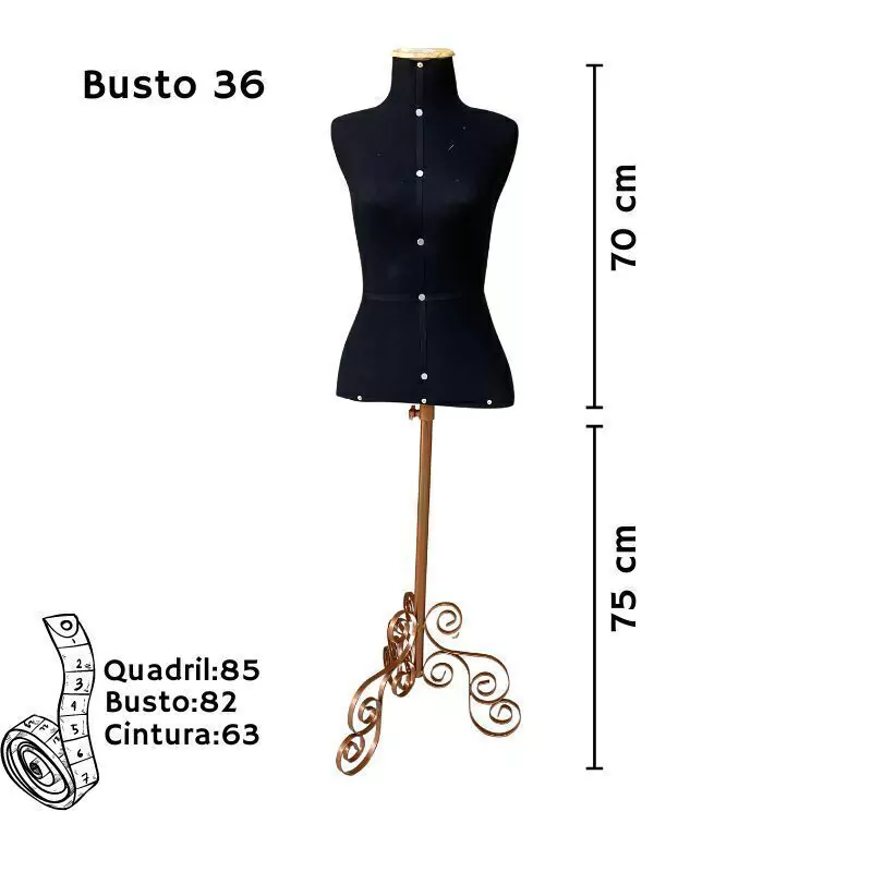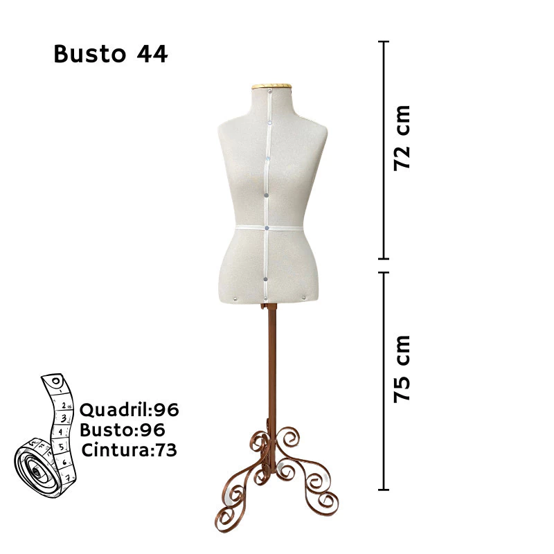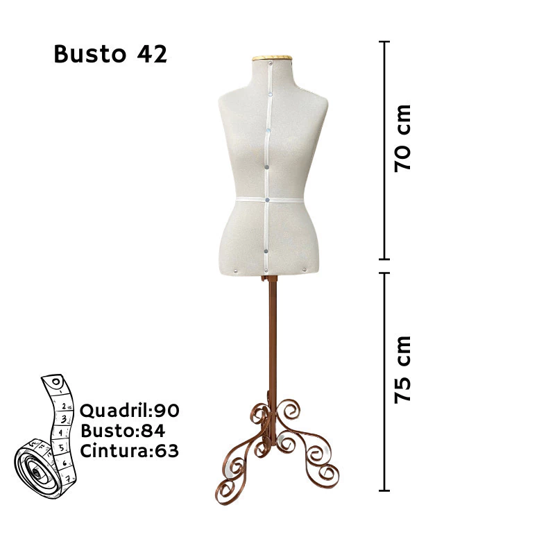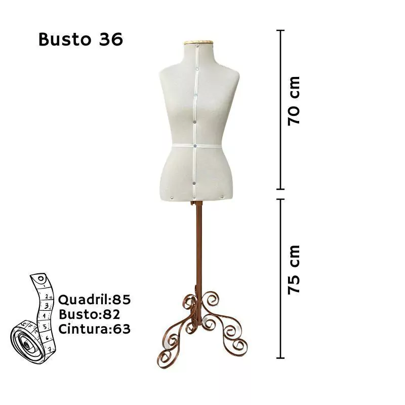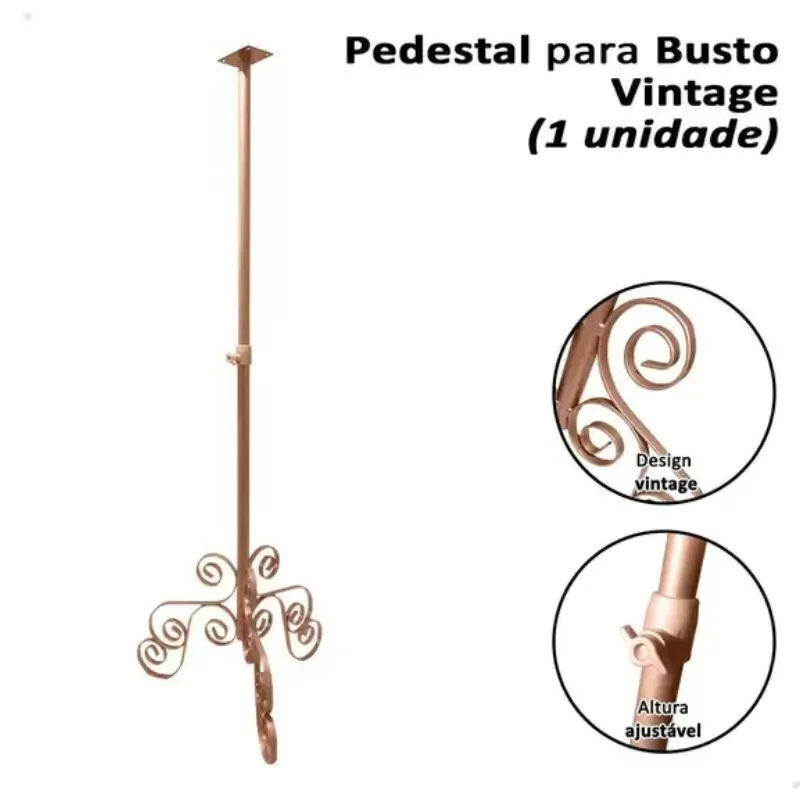 1 busto feminino de costura, 1 pedestal metálico vintage rosé ajustável
