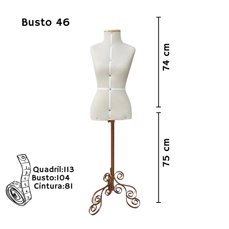 Manequim Busto para Costura com Pedestal Vintage Rosé – Tamanhos 36 a 52