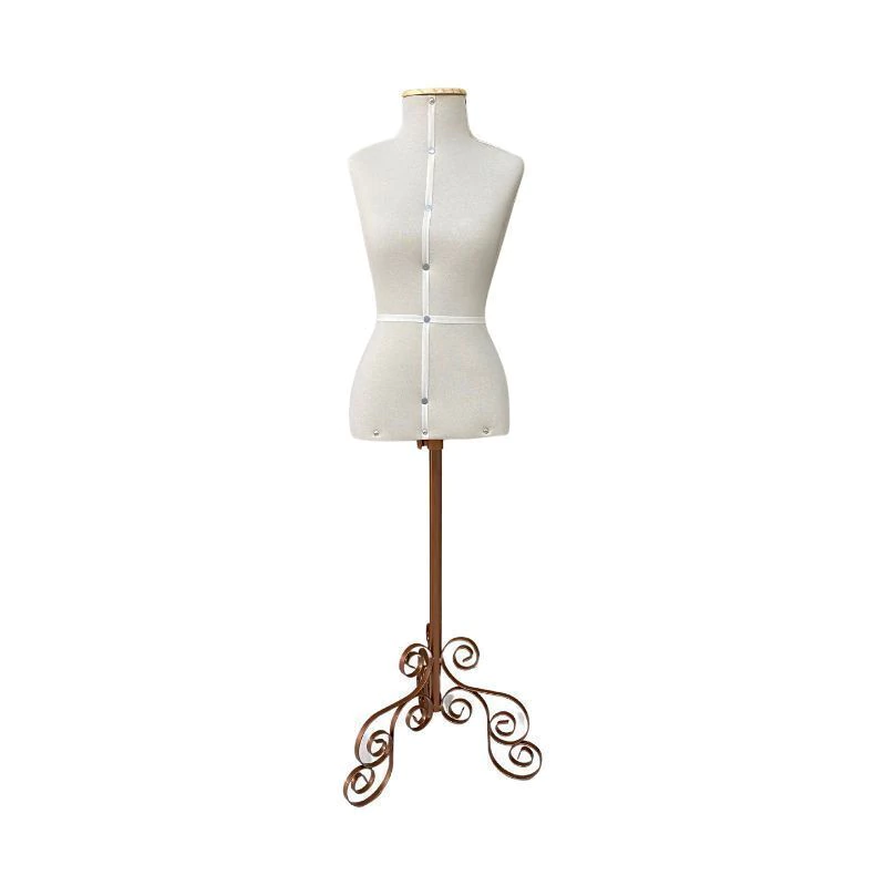 Manequim de costura busto feminino com pedestal vintage rosé, ideal para modelagem plana, moulage e confecção de peças sob medida. Perfeito para estudantes e profissionais de moda que buscam precisão, elegância e funcionalidade no processo criativo.