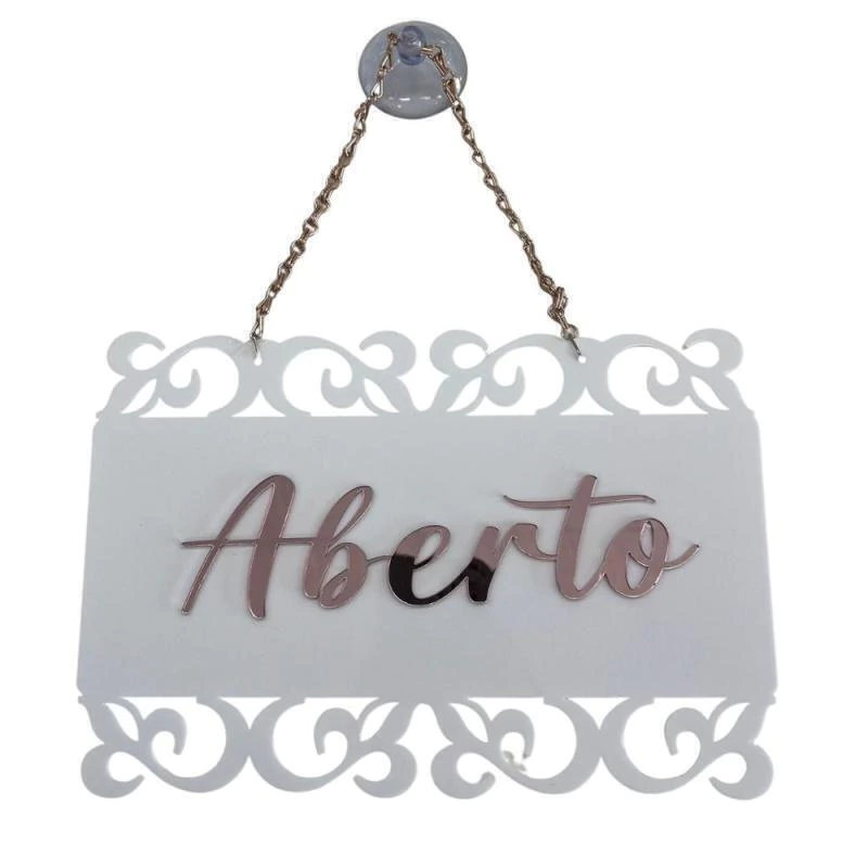 Placa Aberto e Fechado Retrô Branco e Rosé