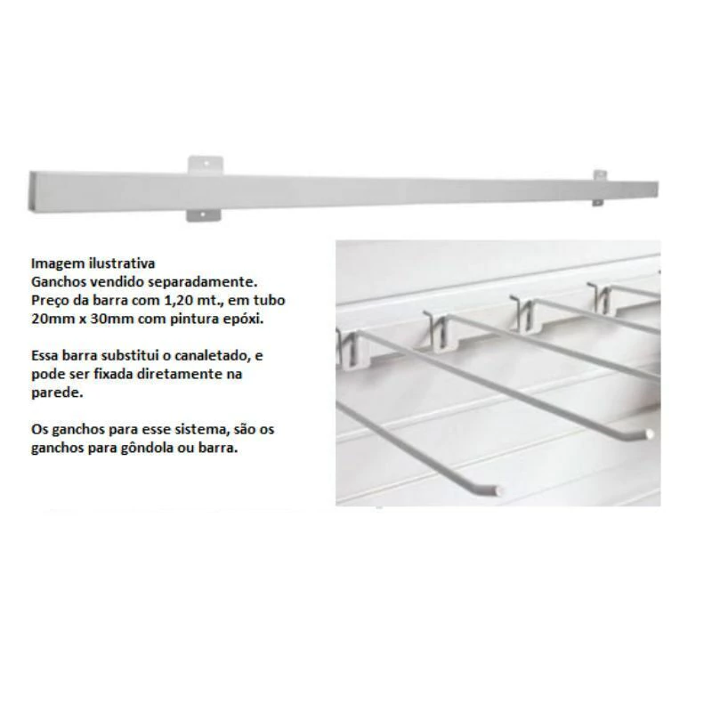Régua Fixa de Parede 100 cm Tubo 20x30 Branco – Ideal para Gancheiras, RT Reto e Inclinado