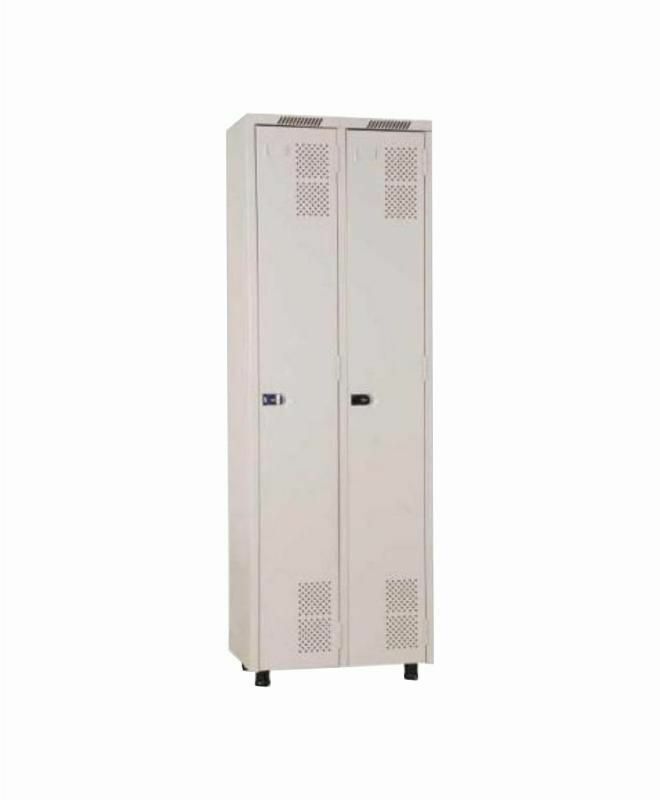 O Roupeiro 2 Portas em aço é a solução prática e segura para organização de objetos em ambientes como vestiários, academias, escolas e empresas. Com estrutura robusta, conta com venezianas nas portas para melhor ventilação interna e pés plásticos que garantem estabilidade e durabilidade.