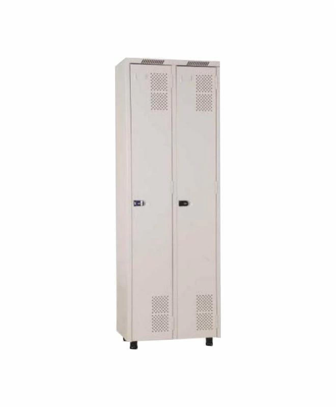 O Roupeiro 2 Portas em aço é a solução prática e segura para organização de objetos em ambientes como vestiários, academias, escolas e empresas. Com estrutura robusta, conta com venezianas nas portas para melhor ventilação interna e pés plásticos que garantem estabilidade e durabilidade.