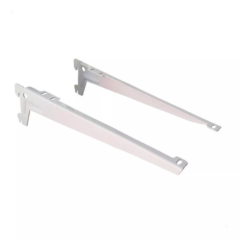 O Par Suporte com Abas para Trilho é ideal para fixação da sua prateleira. Com o sistema de encaixe do suporte no trilho fixo, é necessário para fixar o uso de parafusos, para prateleiras de MDF ou ventosas, em caso de prateleiras de vidro.