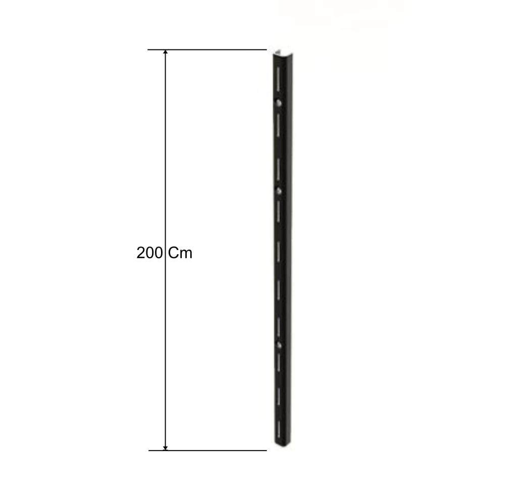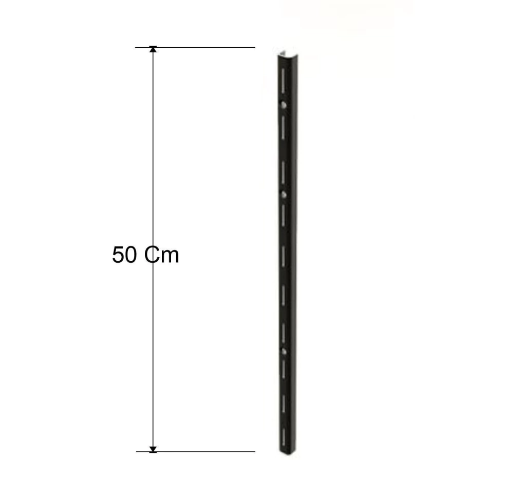 O Trilho Cremalheira Simples na cor preta é a solução ideal para quem deseja montar prateleiras ajustáveis com segurança, praticidade e elegância. Seu design discreto e robusto garante que seus itens fiquem organizados e ao mesmo tempo acessíveis. Perfeito para closets, lojas, supermercados, escritórios, lavanderias, bibliotecas, ou qualquer outro ambiente que precise de uma solução prática para organização. Este trilho de alta resistência proporciona durabilidade e versatilidade, permitindo ajustes finos na altura dos suportes para aproveitar ao máximo o espaço disponível.